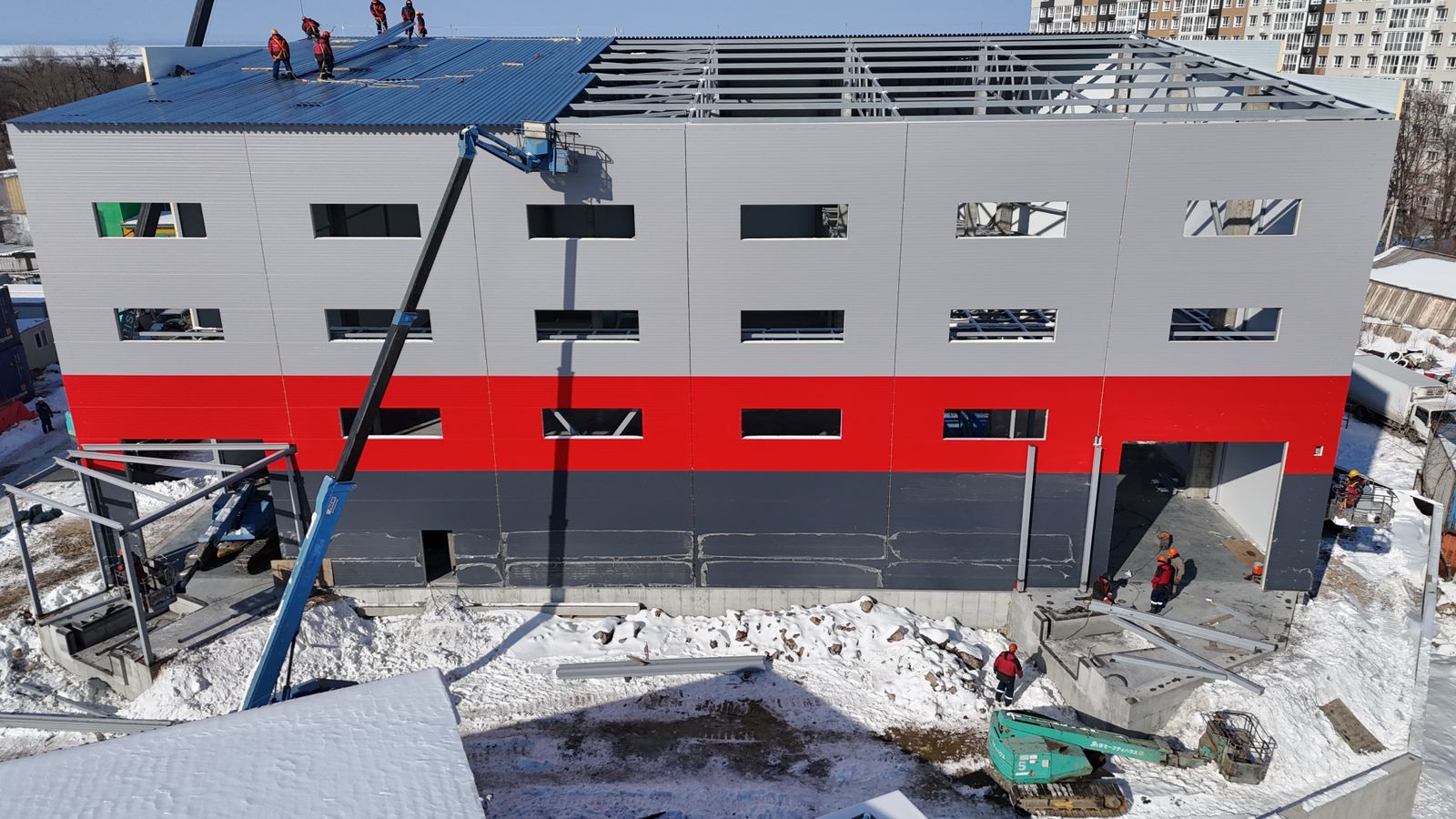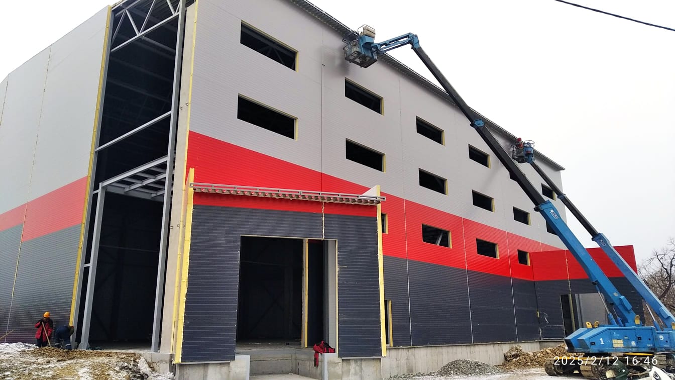 Для строительства нового здания компания выбрала энергоэффективные сэндвич-панели с самым современным утеплителем из огнестойкого пенополиизоцианурата PIR Premier. В оговоренные сроки «ПрофХолод» произвел 2 402 кв. метров сэндвич-панелей с PIR Premier толщиной 120 мм. С внешней стороны сэндвич-панели изготовлены в корпоративных цветах компании: транспортный красный RAL 3020, сигнальный серый RAL 7004 и графитовый серый RAL 7024. С внутренней стороны все сэндвич-панели изготовлены в сигнальном белом цвете RAL 9003.