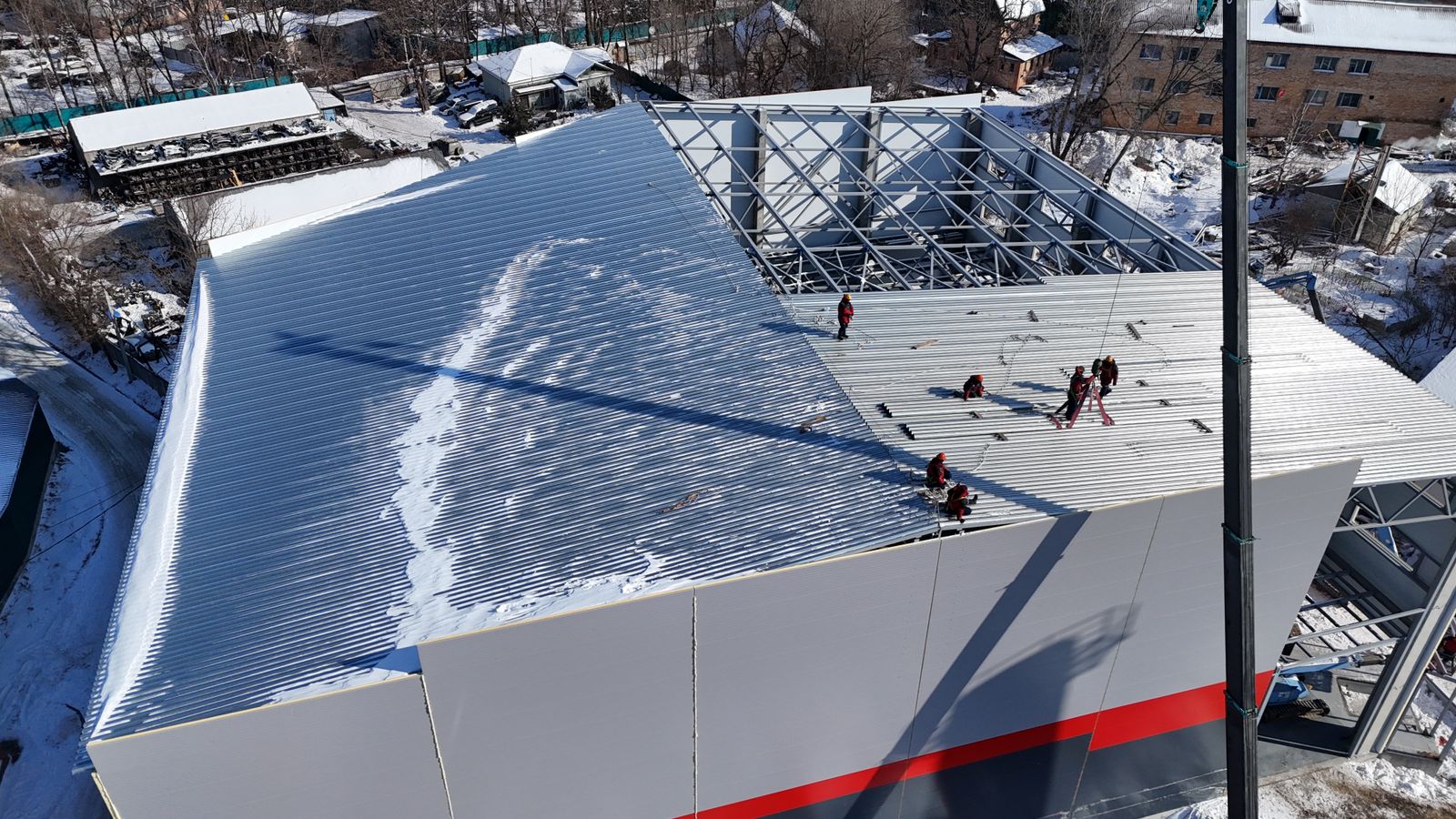 Использование разных цветов для разных сторон сэндвич-панелей позволило учесть требования дизайна и не переплачивать за нестандартный цвет там, где его не будет видно.