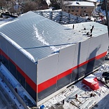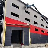 Автомобильной компании требовалось построить современный склад хранения запчастей для автомобилей. Фасад здания необходимо было выполнить в корпоративных цветах компании.