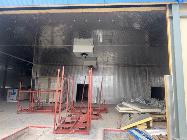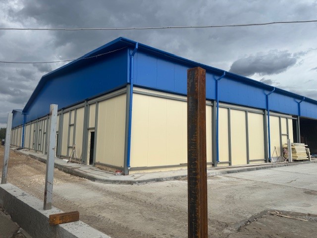 Для строительства мяскомбината «ПрофХолод» произвел 2 367 кв. метров стеновых сэндвич-панелей с PIR Premier. Одна часть панелей с внешней стороны изготовлена в сигнальном белом цвете RAL 9003, с внутренней – из пищевой нержавеющей стали AISI 304. Другая часть панелей с внешней стороны изготовлена в сигнальном синем цвете RAL 5005, а с внутренней стороны в белом цвете RAL 9003.