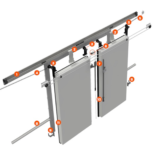 Конструкция откатной двустворчатой двери