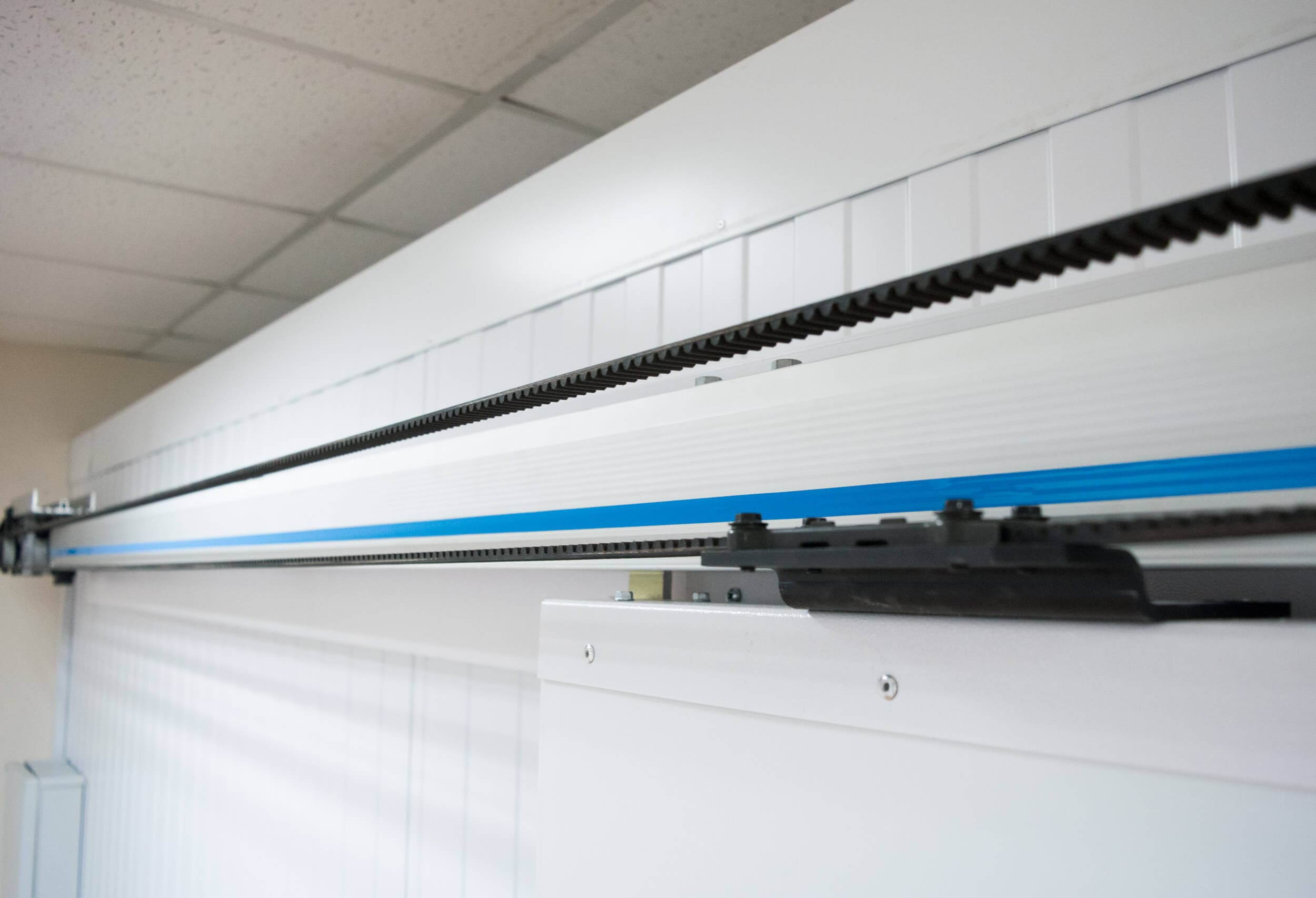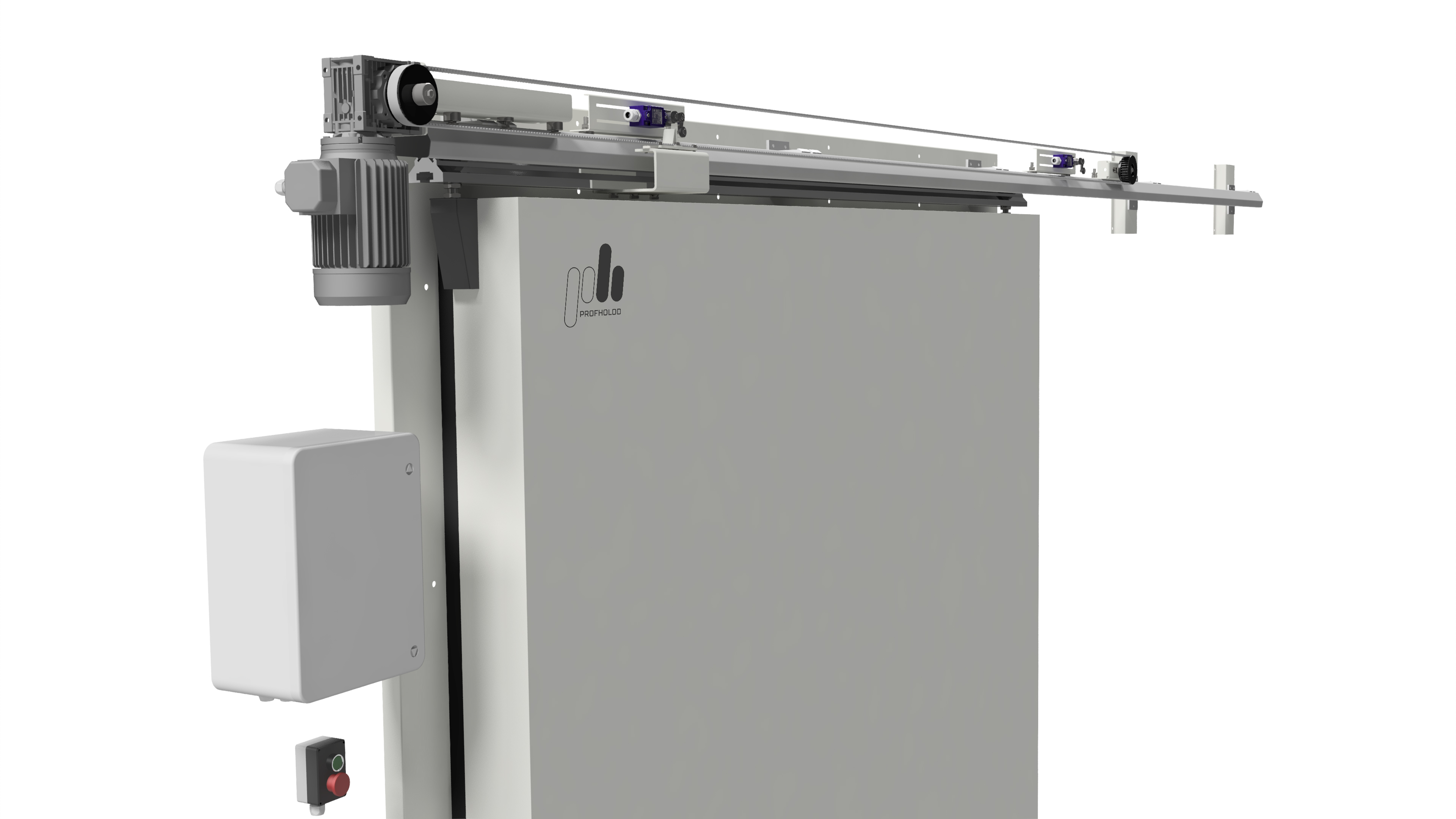 Откатные двери Fermatic комплектуются фурнитурой Fermod (Франция). Возможна установка российского электропривода собственного производства «ПрофХолода».