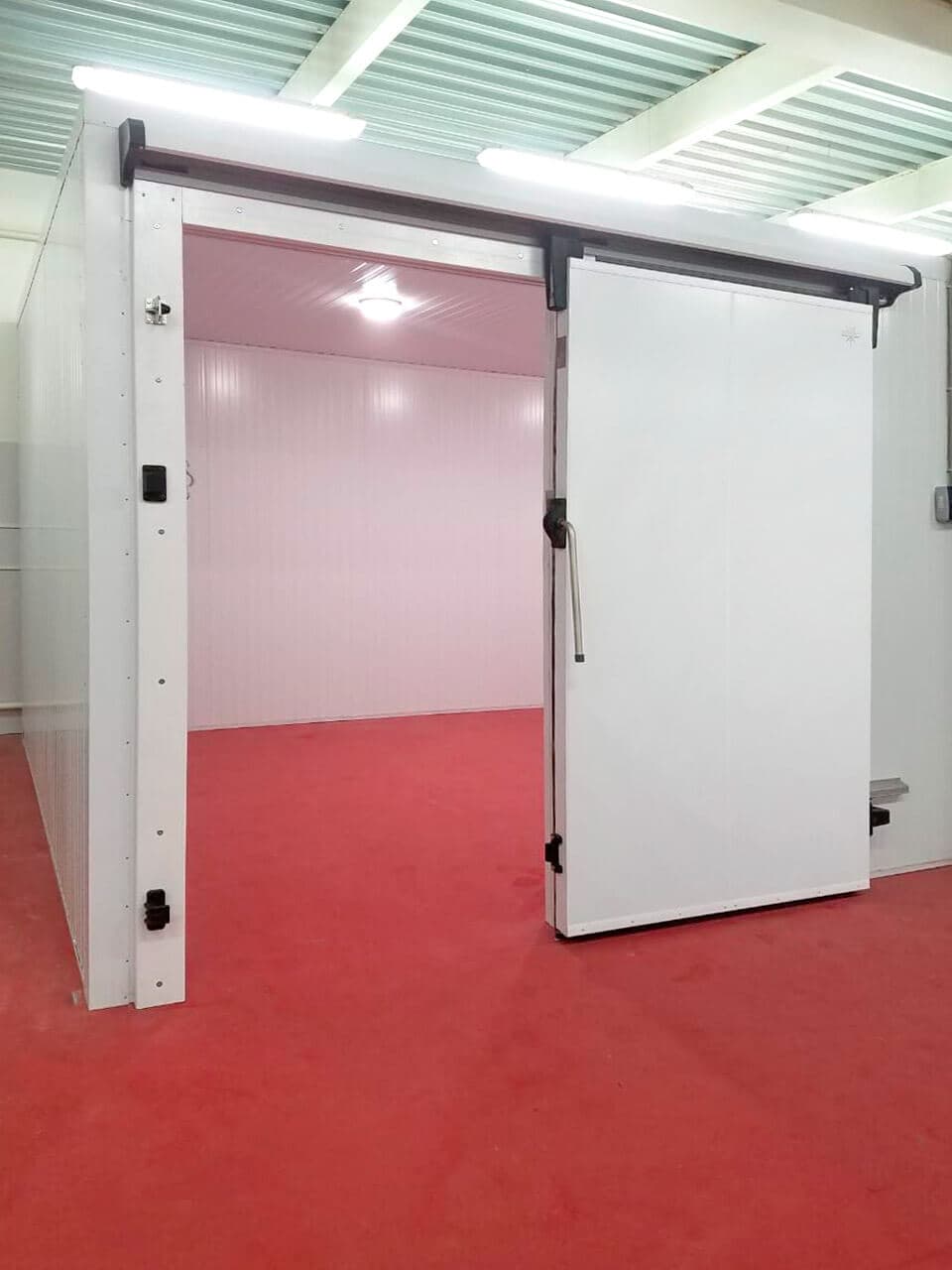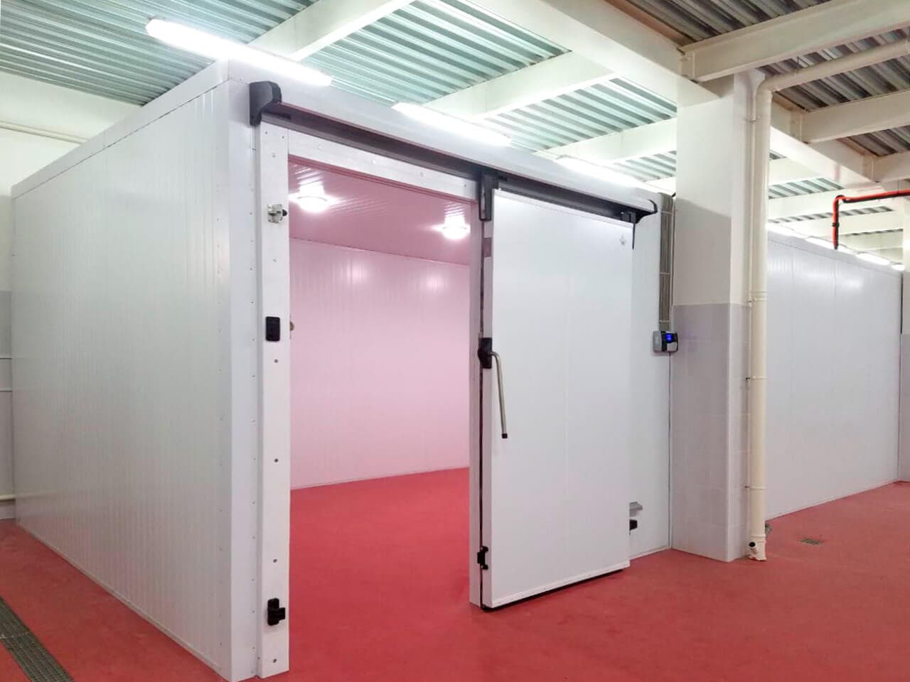 Для строительства холодильной камеры для хранения икры на рыбоперерабатывающем производстве в Московской области «ПрофХолод» произвел и поставил сэндвич-панели с PIR Premier и 2 откатные холодильные двери на испанской фурнитуре «Киде».