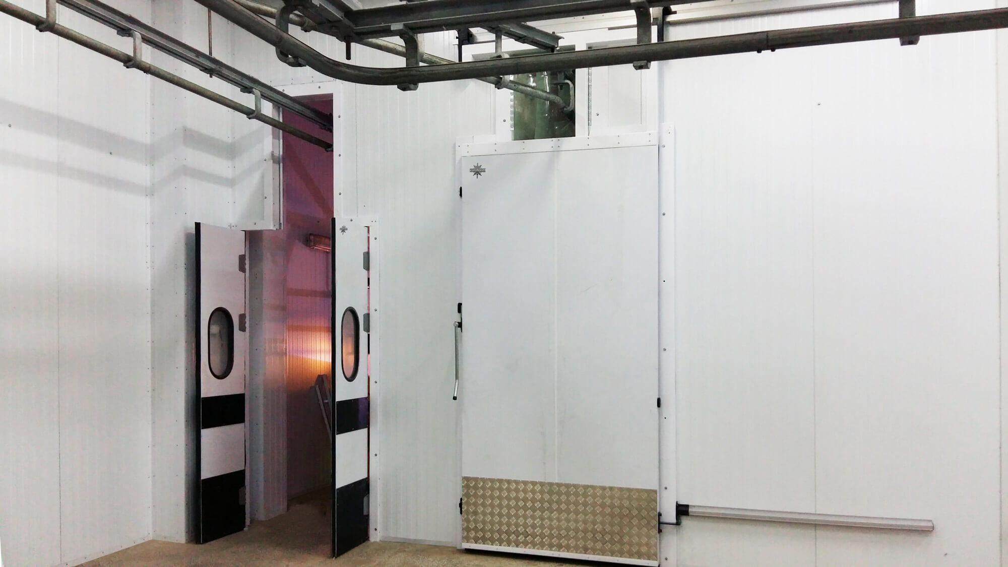 Для утепления использованы более 1700 кв. м стеновых панелей PIR Premier «ПрофХолод» толщиной 40 мм из лучших зарубежных компонентов, для модернизации — 13 технологических, 7 маятниковых, 4 откатных и 3 распашных двери «ПрофХолод» на европейской фурнитуре.