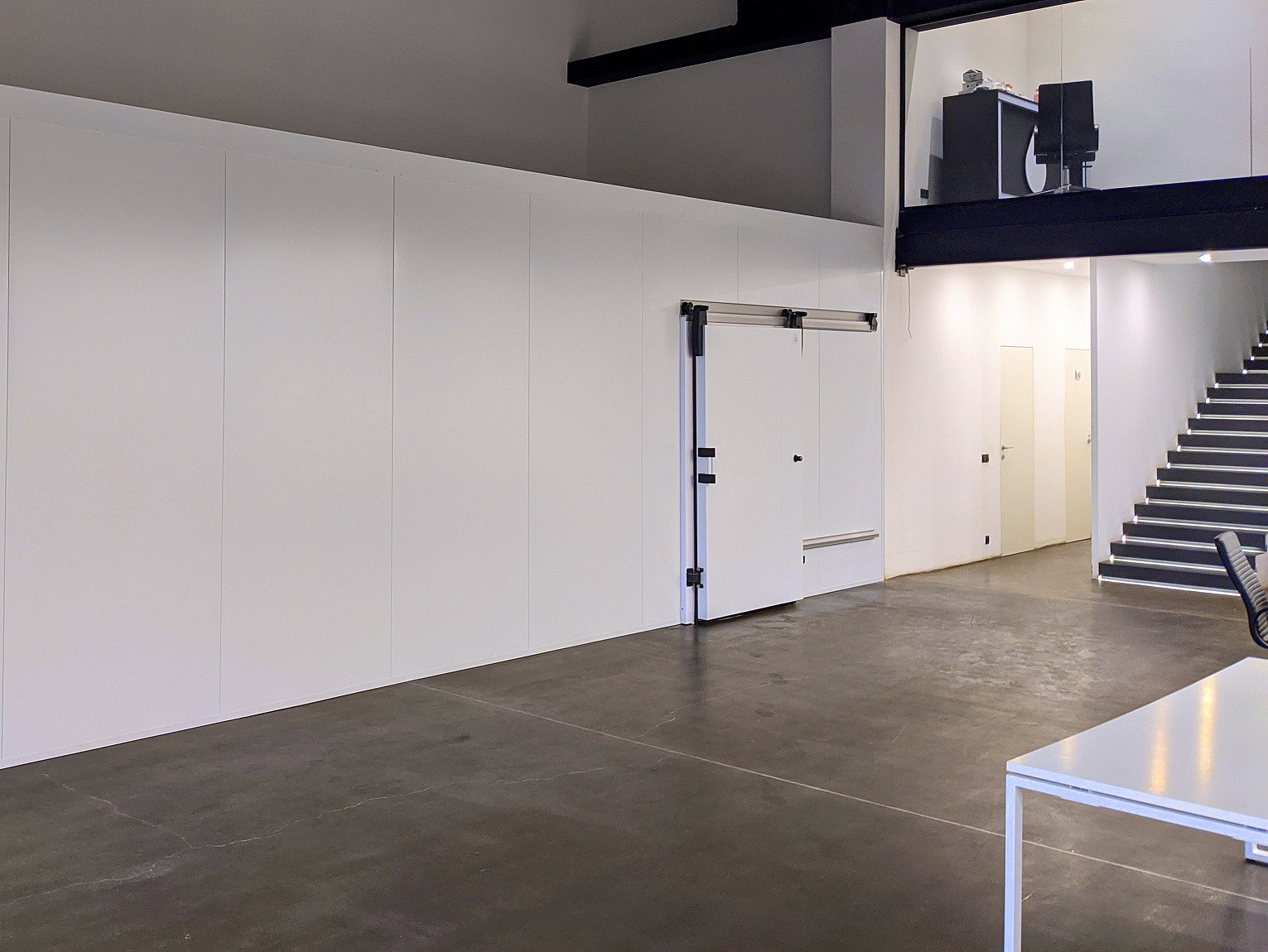 Для строительства холодильной камеры в офисном помещении в Московской области «ПрофХолод» произвел и поставил стеновые сэндвич-панели с PIR Premier и откатную холодильную дверь.