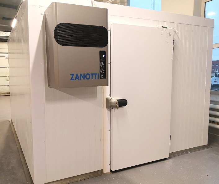 Для строительства холодильного склада в Риге, Латвия, «ПрофХолод» произвел и поставил стеновые сэндвич-панели с PIR Premier и откатную холодильную дверь.