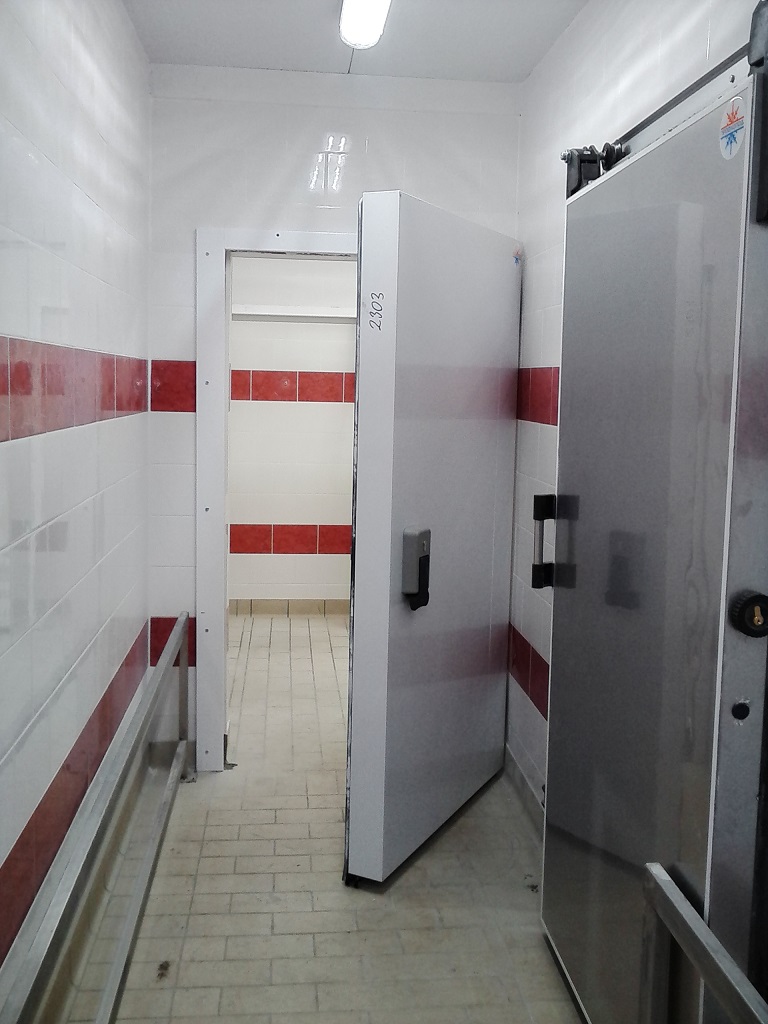Для строительства холодильной камеры для мясокомбината в Московской области, «ПрофХолод» произвел и поставил стеновые сэндвич-панели с PIR Premier и две распашные холодильные двери.