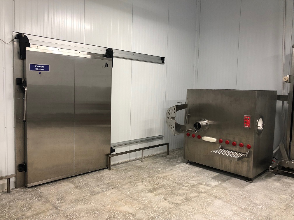 Для строительства мясоперерабатывающего цеха в Курской области «ПрофХолод» произвел и поставил три откатные и две распашные холодильные двери, изготовленные из нержавеющей стали AISI 304 для пищевых продуктов.