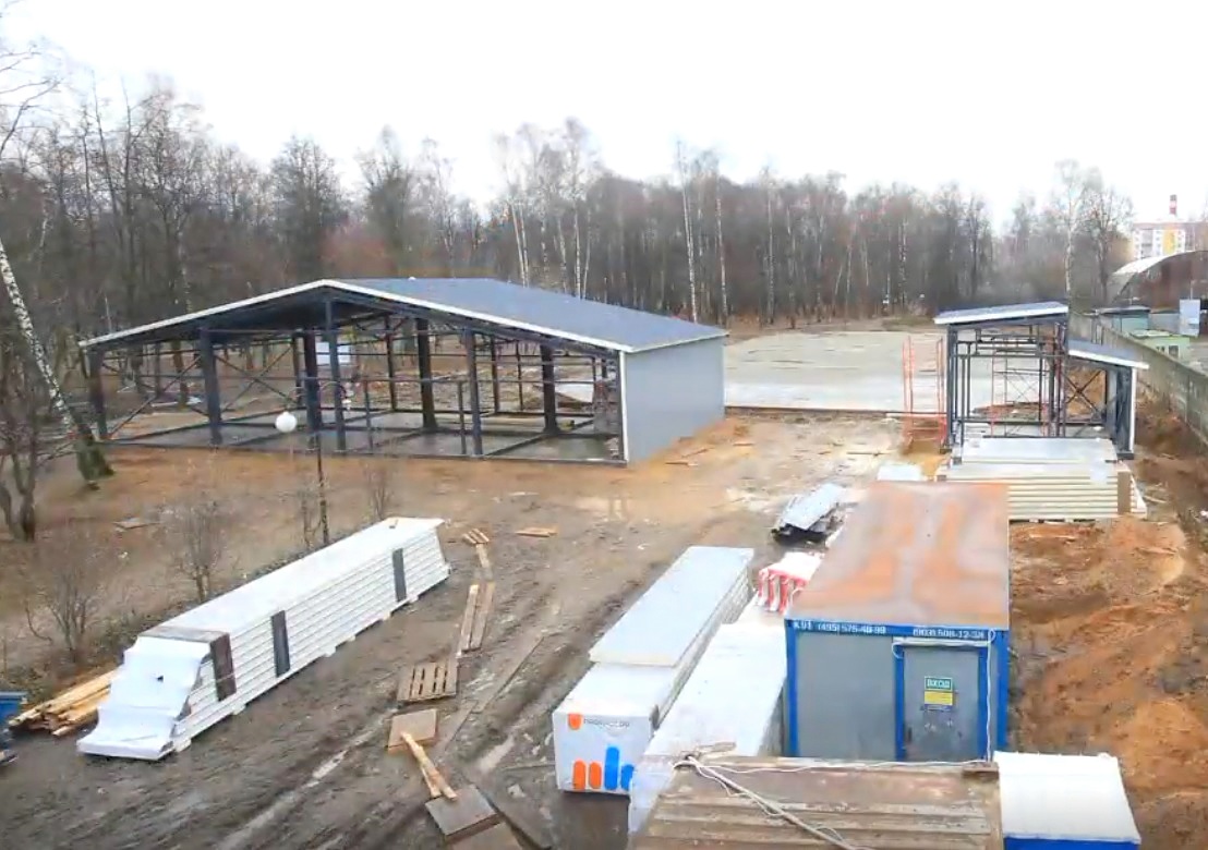 Для строительства гаража и помещения проката для катка в Московской области «ПрофХолод» произвел и поставил более 1070 кв. м стеновых и более 490 кв. м кровельных сэндвич-панелей с PIR Premier толщиной 150 мм в сером и графитовом сером цветах RAL 7046 и RAL 7024