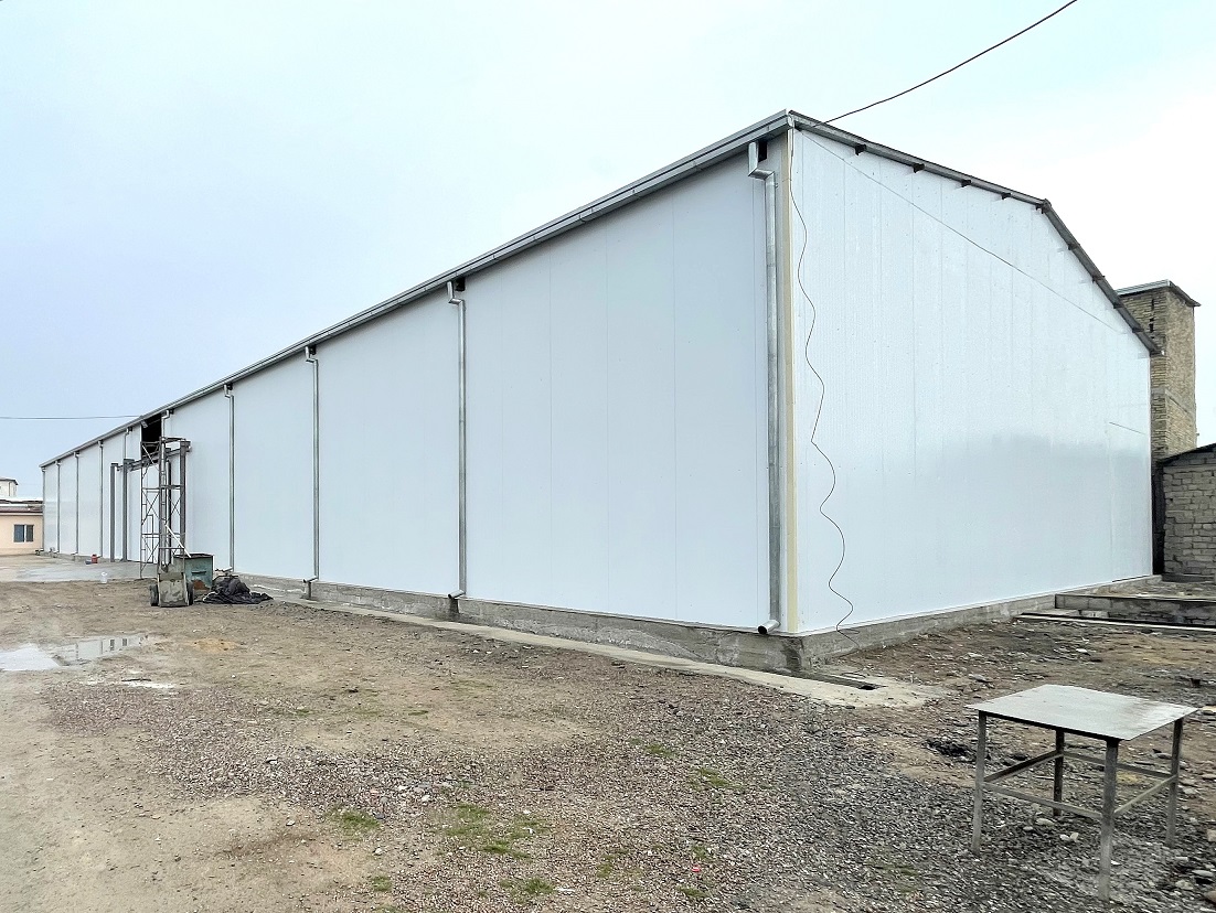 Для строительства склада для хранения строительных материалов в Ташкенте, Узбекистан, «ПрофХолод» произвел и поставил 1 100 кв. м стеновых сэндвич-панелей с PIR Premier толщиной 40 мм в стандартом белом цвете RAL 9003.