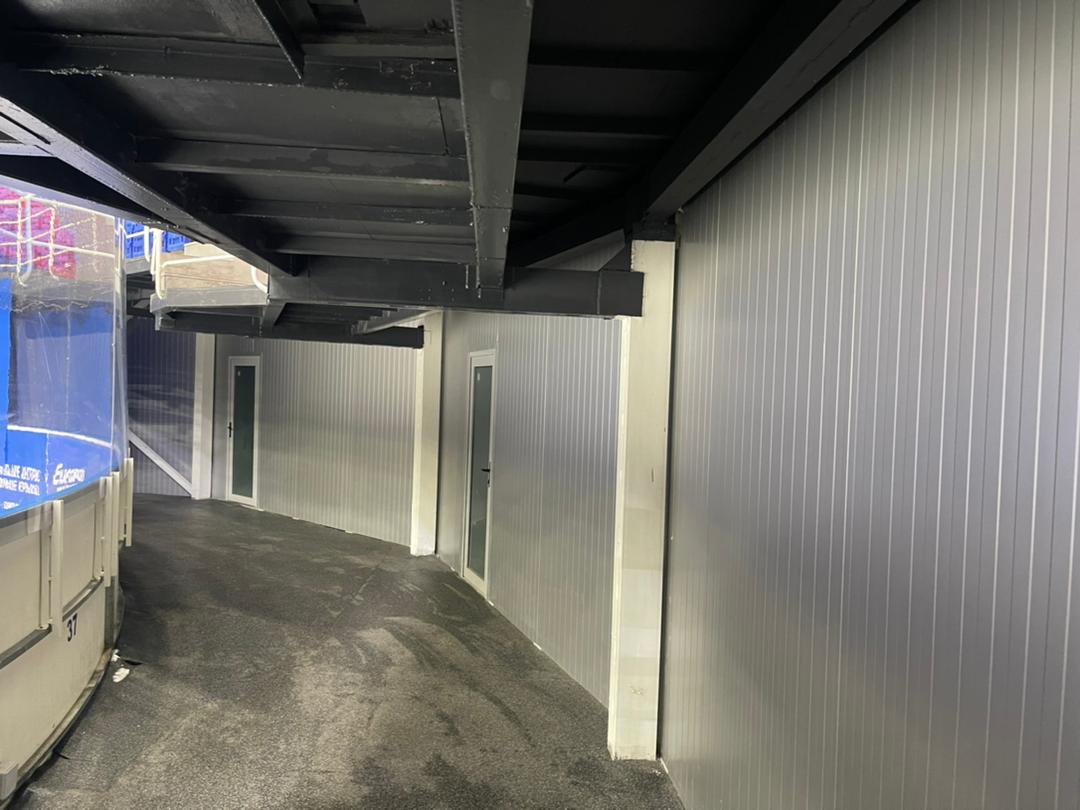 Для строительства раздевалок в спортивном комплексе в Бишкеке, Кыргызстан, «ПрофХолод» произвел и поставил 1 169 кв. м стеновых сэндвич-панелей с PIR Premier толщиной 40 и 60 мм в белом цвете RAL 9003.
