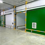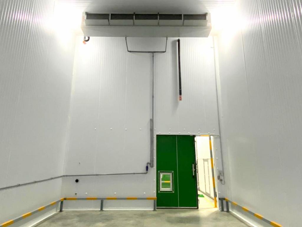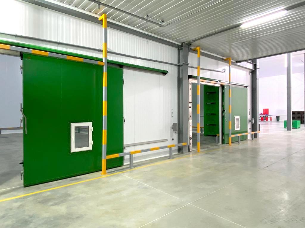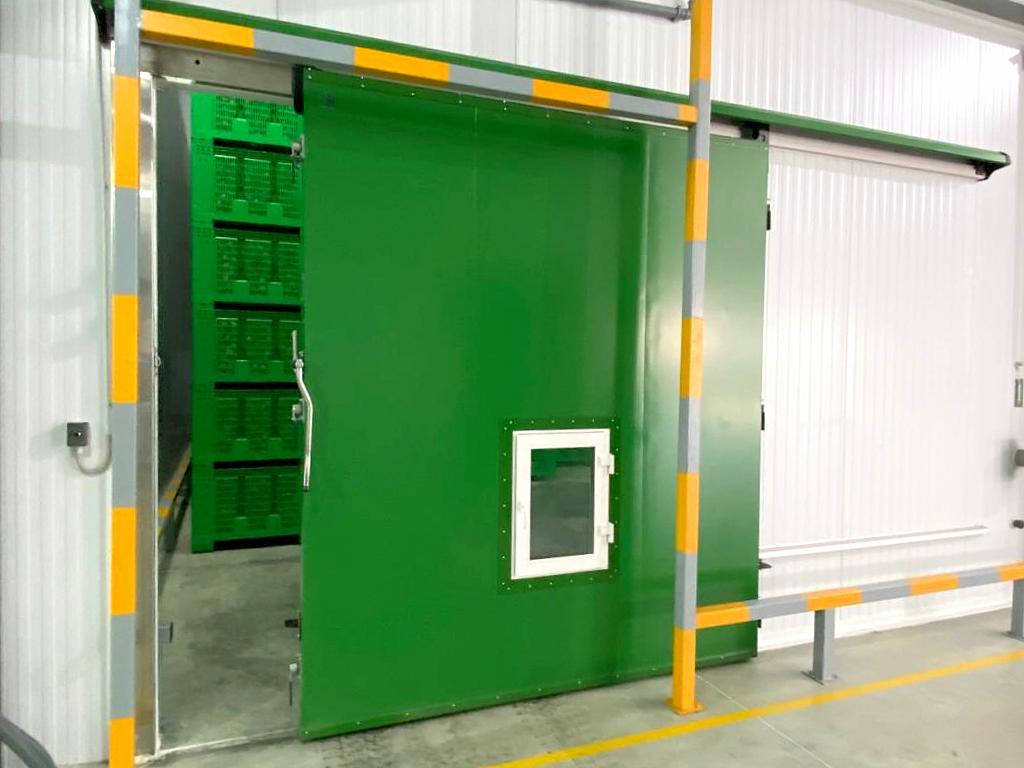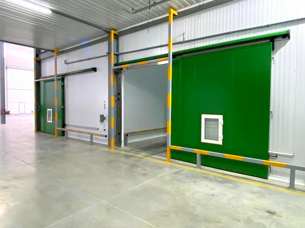 Для строительства фруктохранилища на 600 тонн продукции «ПрофХолод» произвел и доставил в Ставропольский край более 3300 кв. м сэндвич-панелей с утеплителем PIR Premier и 4 откатные двери для РГС. Толщина сэндвич-панелей — 100 и 120 мм, толщина ОД ГС — 100 мм.