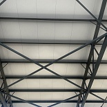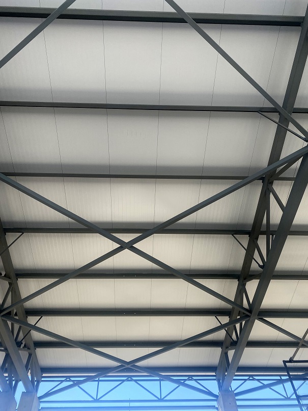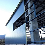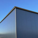 В соответствии с индивидуальным заказом сэндвич-панели выполнены в двух цветах. Стеновые: снаружи серый RAL 7000, внутри стандартный сигнальный белый RAL 9003, кровельные: снаружи базальтово-серый RAL 7012, внутри RAL 9003. Фасонные элементы также произведены в двух цветах, с одной стороны Zn, с другой – RAL 7000 и 7012.