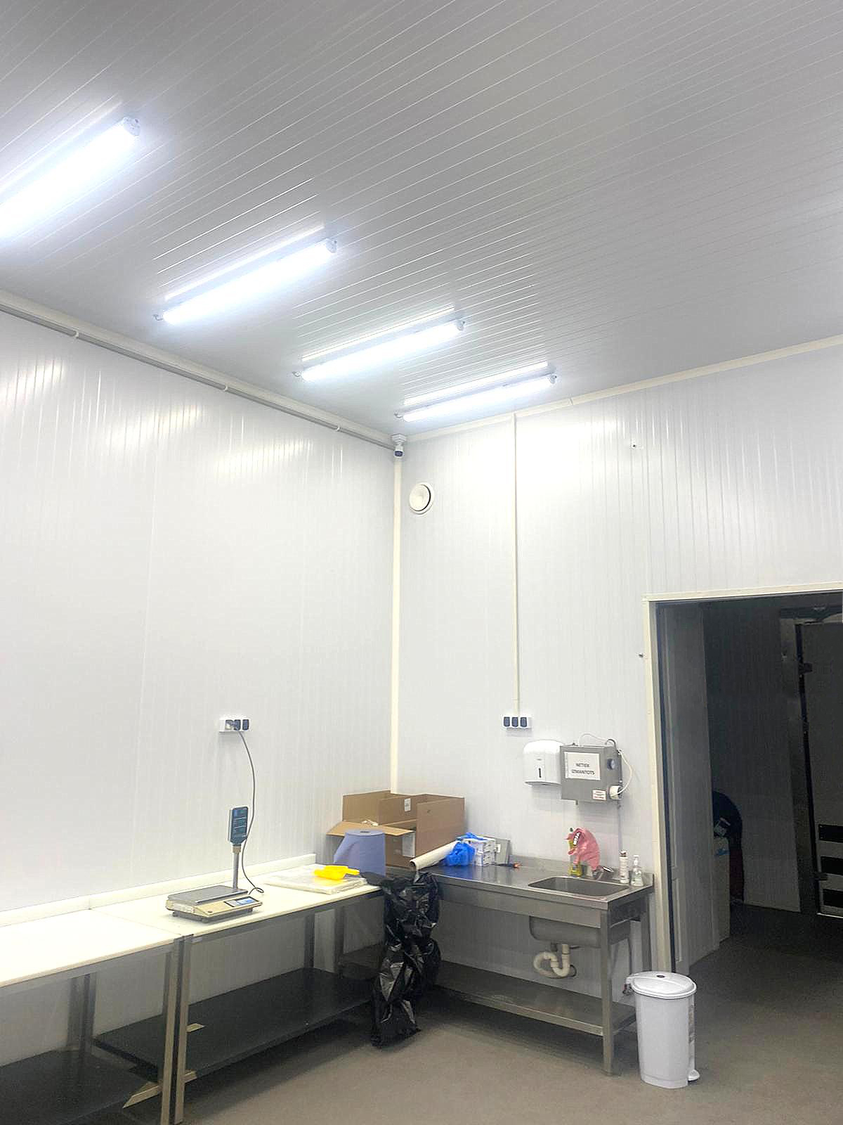 В соответствии с заказом «ПрофХолод» произвел более 750 кв. м сэндвич-панелей с PIR Premier. Толщина сэндвич-панелей: 80 и 100 мм, цвет стандартный сигнальный белый RAL 9003/RAL 9003.