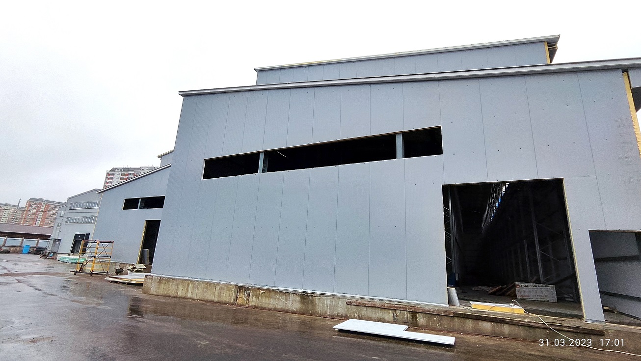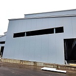 Для расширения складского комплекса в Балашихе, Московская область, требовалось оперативно построить новый склад из энергоэффективных материалов. Проконсультировавшись со специалистами «ПрофХолода», заказчик выбрал сэндвич-панели с PIR Premier. Всего за две недели «ПрофХолод» произвел 2 313 кв. м стеновых и 2 154 кв. м кровельных сэндвич-панелей с PIR Premier толщиной 120 мм. В соответствии с дизайном здания, сэндвич-панели изготовлены в сигнальном сером цвете RAL 7004 с одной стороны и сигнальном белом RAL 9003 с другой.