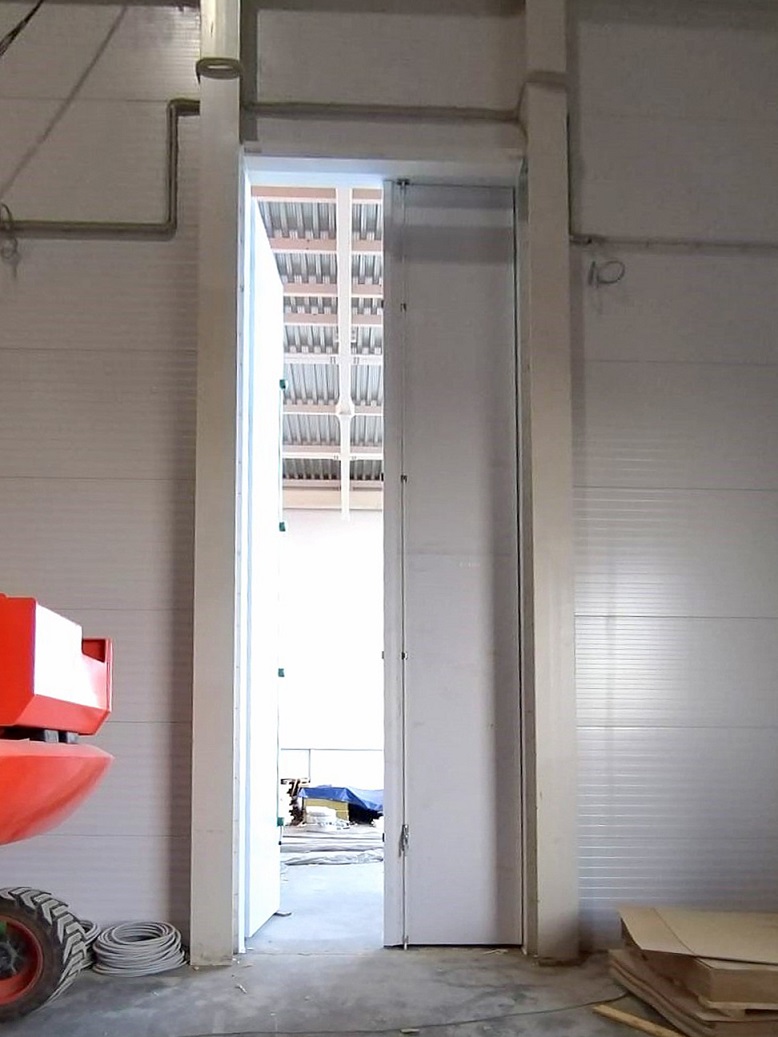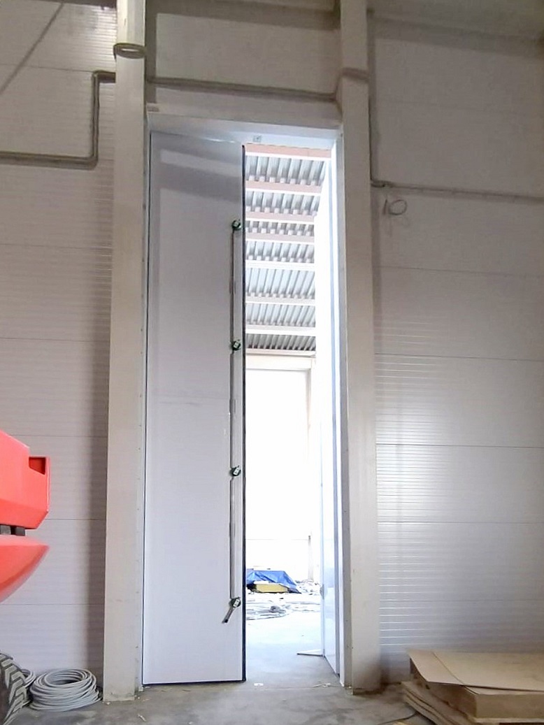 Для морозильных камер, температура в которых будет достигать -24 °C, «ПрофХолод» произвел 5 распашных двустворчатых дверей толщиной 150 мм. Одна из дверей нестандартного размера, 7200х2200 мм, 4 других – 2100х1500 мм.