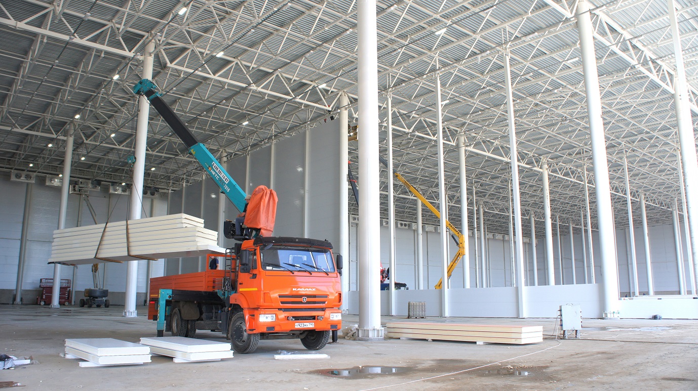 Заказчику требовалось оперативно построить склад для замороженной продукции в Московской области в ярком дизайне.
