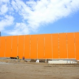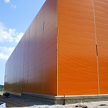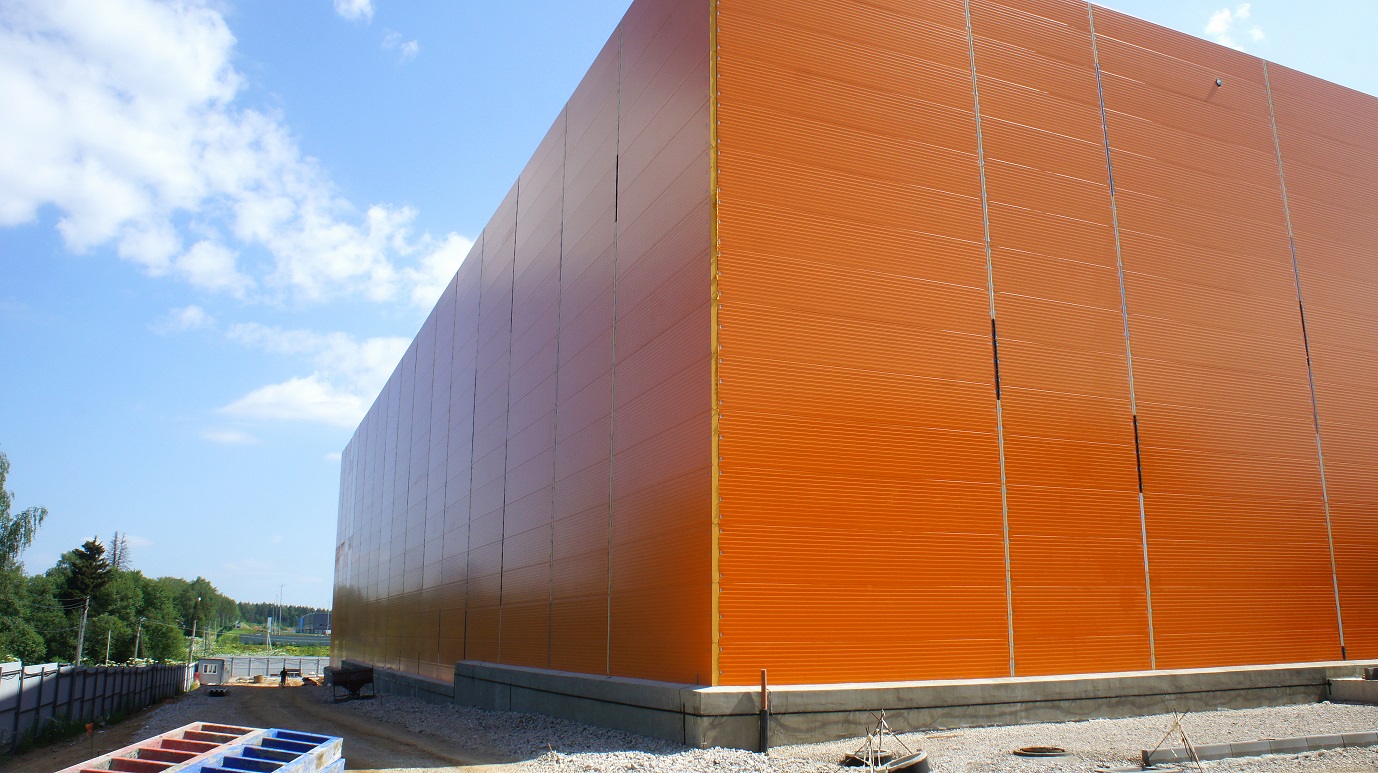 Толщина сэндвич-панелей с PIR Premier – 80 и 150 мм, с минеральной ватой – 150 мм. Яркий нестандартный оранжевый цвет RAL 2000 позволяет зданию выигрышно выделяться на местности.