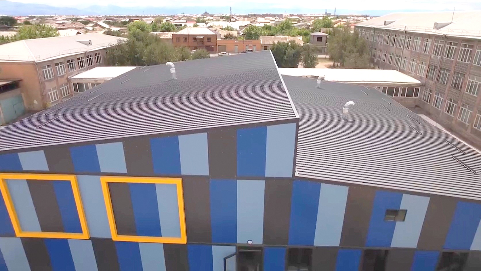 Для строительства в Армении 4 современных энергоэффективных зданий спортивных школ в ярком дизайне требовались сэндвич-панели.