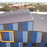 «ПрофХолод» поставил более 2800 кв. м стеновых и кровельных сэндвич-панелей с минеральной ватой в трех цветах для создания уникального дизайна. Для стен использовались сэндвич-панели толщиной 100 мм. Для кровли — сэндвич-панели толщиной 120 мм. Цвета выбирал заказчик: RAL 5005/9003, 5024/9003 и 7024/9003.