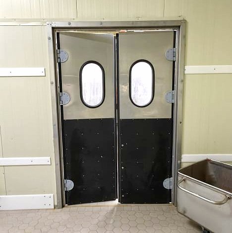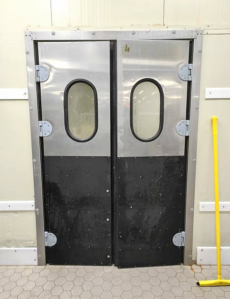 - маятниковую двустворчатую дверь, которая открывается в обе стороны, обеспечивая быстрый и удобный проход. Полотно двери изготовлено из нержавеющей стали AISI 304/ AISI 304, толщина — 40 мм