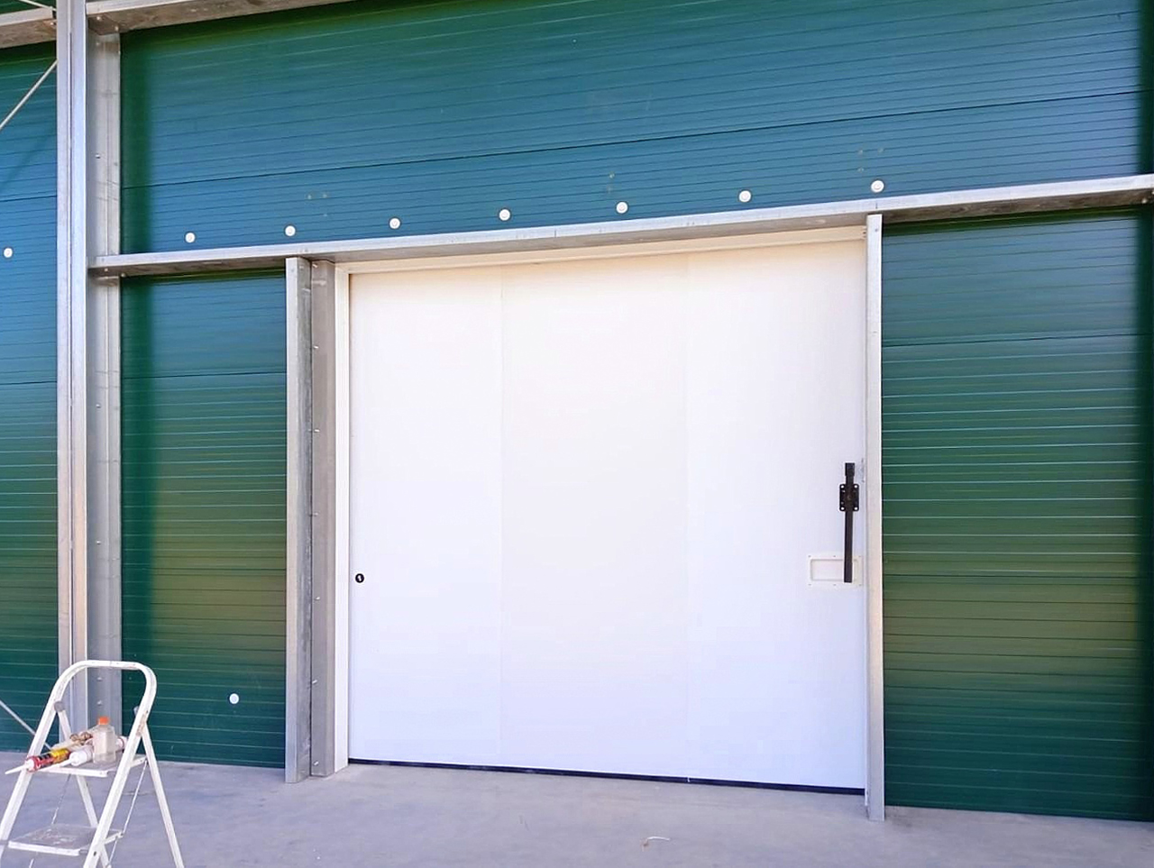 Для строительства нового здания «ПрофХолод» произвел 2 675 кв. метров сэндвич-панелей толщиной 100 мм. Часть сэндвич-панелей с внешней стороны изготовлена в нестандартном темно-зеленом цвете «зеленый мох» RAL 6005, с внутренней стороны – в сигнальном белом цвете RAL 9003.