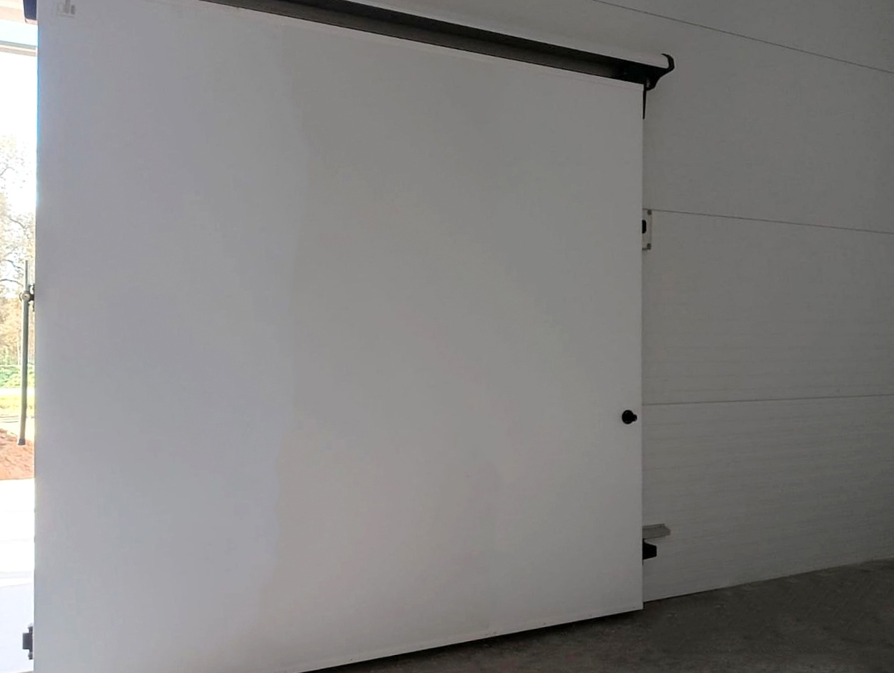 - одна распашная противопожарная дверь для холодильных помещений с повышенными требованиями к пожарной безопасности. Стальные дверные блоки эффективно сохраняют тепло или холод и не дают огню и продуктам горения распространяться за пределы помещения. По внутреннему периметру дверного полотна установлены двойной контур теплоизоляционного уплотнителя и терморасширяющаяся лента, которая под воздействием высоких температур заполняет зазор между полотном и рамой, препятствуя проникновению огня и дыма в соседние помещения. Противопожарная дверь комплектуется противопожарными петлями производства «ПрофХолод» и металлическим замком французского производителя Fermod.
