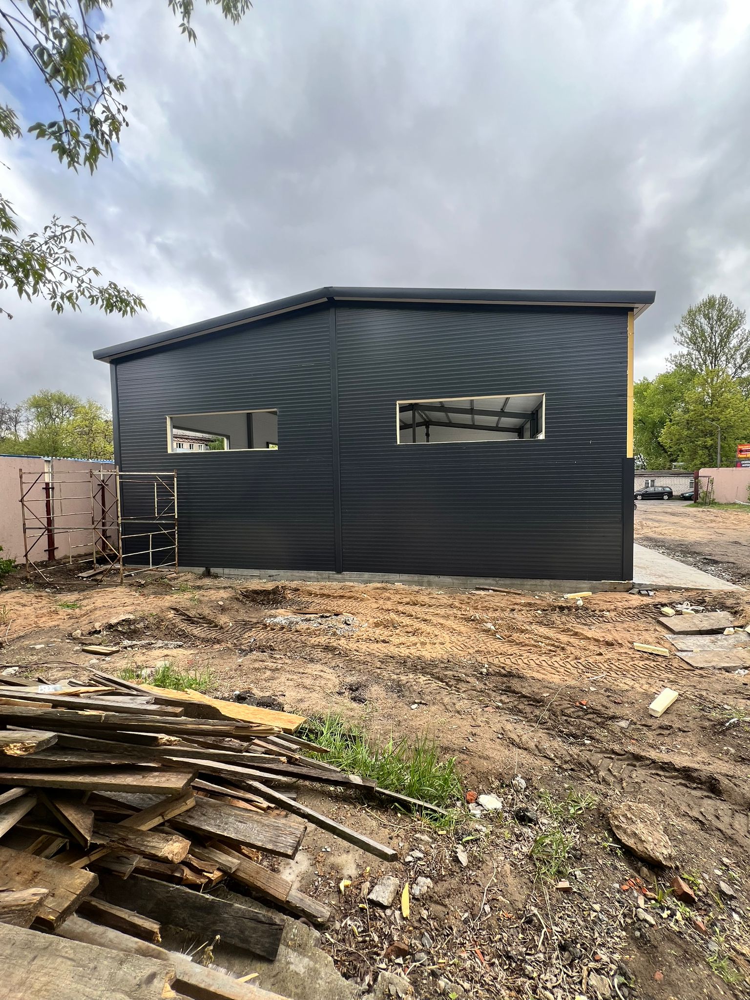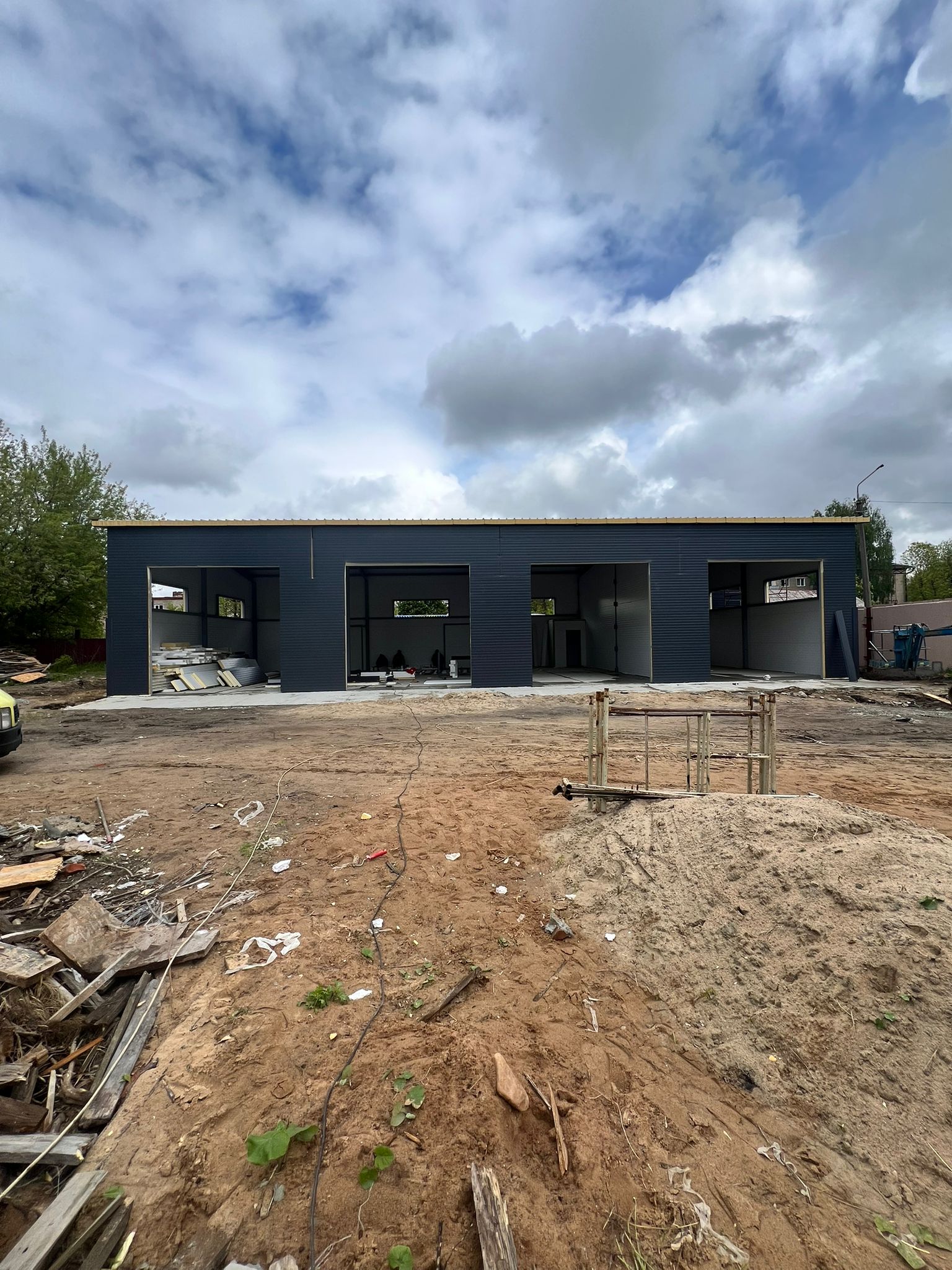 Компании требовались сэндвич-панели темного цвета для оперативного строительства автосервиса в Минске, Беларусь.