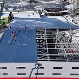 Использование разных цветов для разных сторон сэндвич-панелей позволило учесть требования дизайна и не переплачивать за нестандартный цвет там, где его не будет видно.