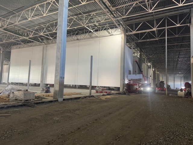 Сэндвич-панели изготовлены в сигнальном белом цвете RAL 9003 c обеих сторон. Для внешнего контура использовались сэндвич-панели толщиной 100 мм, для внутренних стен – сэндвич-панели толщиной 120 и 150 мм.