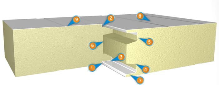 Коническое соединение по пене. Направляет панели при стыковке, обеспечивает жесткое, качественное соединение панелей независимо от длины панели, фиксирует герметик. 3.